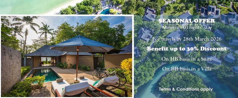 Situated on the North beach of Port Launay these one bedroom villas off er the ultimate beachside accommodation. Each is spaciously designed and stylishly decorated with large en-suite bathrooms, private swimming pool, pergola for relaxation, LCD TV, mac mini, mini-bar, tea and coff ee facilities, Nespresso machine with capsules, complimentary bicycles and complimentary WI-FI.