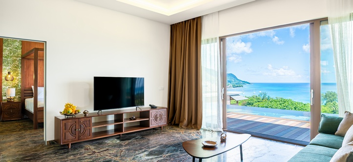 Each 120 m² villa bears the name of a unique blooming plant native to the Seychelles, imbuing each space with its own charm and exotic allure.